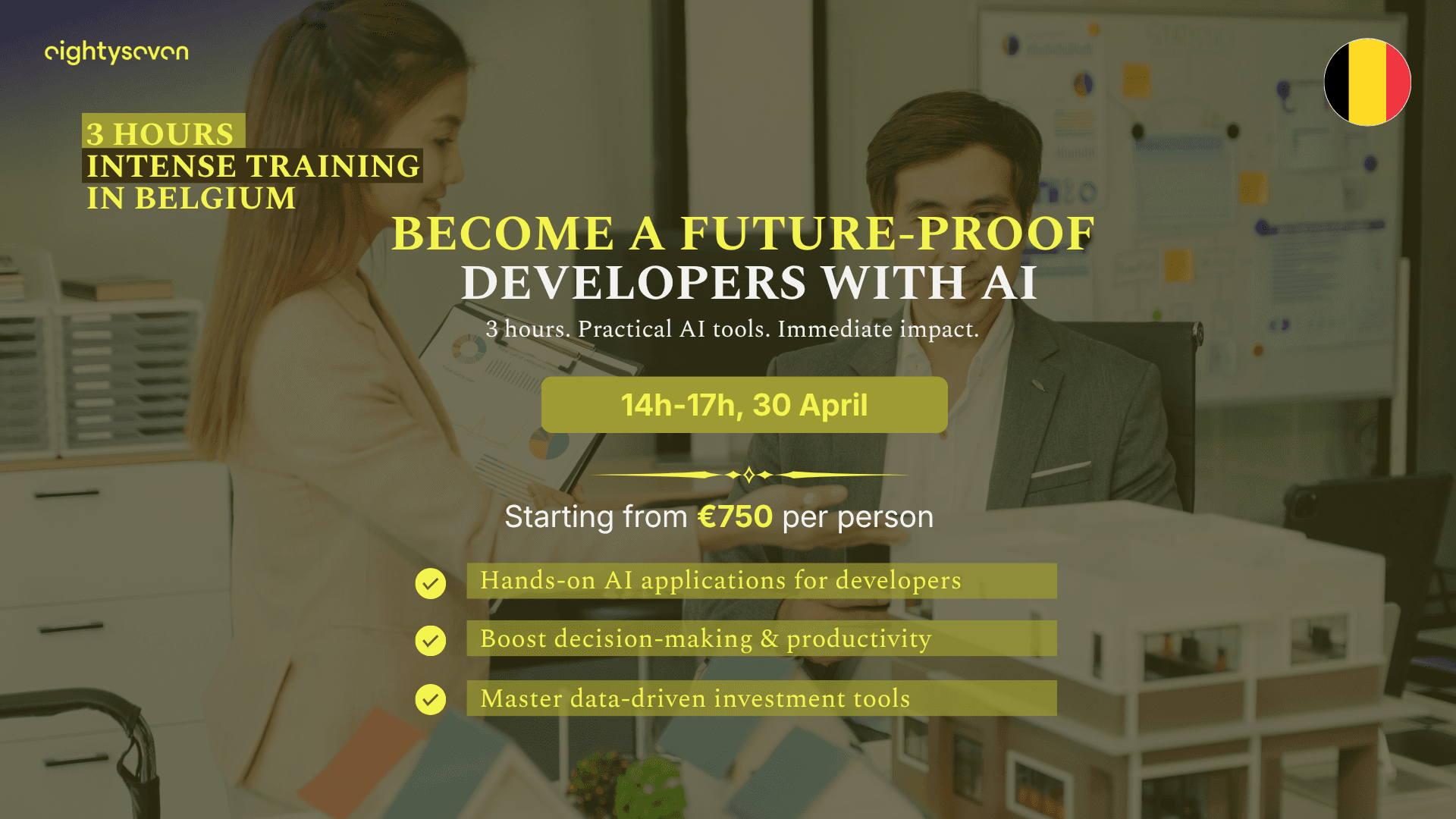 Address: EightySeven Hub - Woluwe Gate, 4th floor (or online)