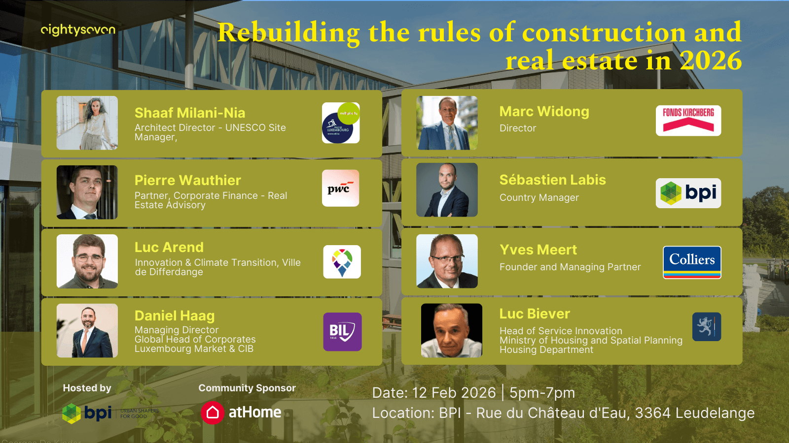 On February 12th at 5pm, we are organizing our next event in Luxembourg, hosted by BPI Real Estate, on the theme: Rebuilding the rules of construction and real estate in 2026
