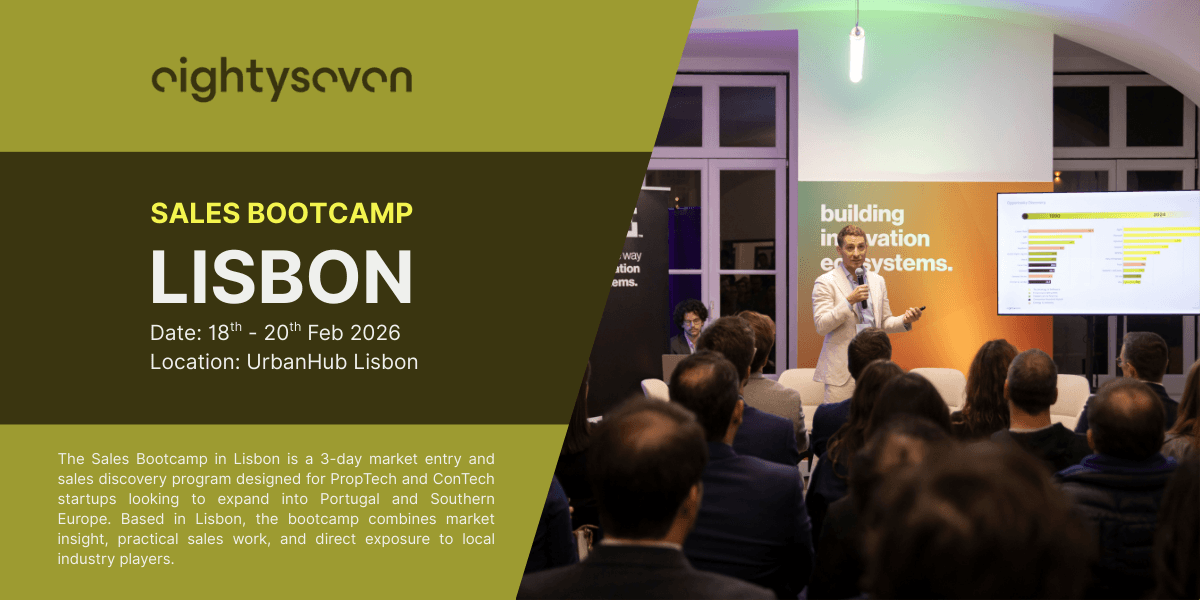 The Sales Bootcamp in Lisbon is a 3-day market entry and sales discovery program designed for PropTech and ConTech startups looking to expand into Portugal and Southern Europe. Based in Lisbon, the bootcamp combines market insight, practical sales work, and direct exposure to local industry players. Click to see more info and register!